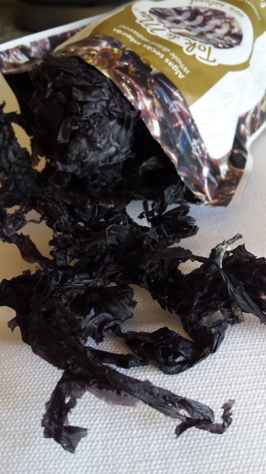 Nesta receita usei algas erva-patinha da Tok de Mar by ALGAplus. São também conhecidas como alface roxa (português), Nori (português e francês), Atlantic nori, Purple laver ou Sloke (inglês), Nabel-hauttang ou Porphyrtang (alemão), Porfira ou Touca (espanhol), ou Nori (japonês). É equivalente à espécie japonesa usada no sushi, tendo um alto teor de vitaminas A e B12, fósforo e selénio. Esta variedade tem um sabor fumado e a cogumelos secos, reforçando o sabor dos restantes ingredientes desta receita, e é ideal para sopa e guisados.